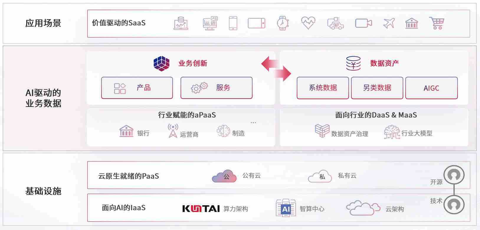 数字时代,,,围绕企业数字化转型的关键要素,,,,z6com尊龙凯时数码开创性的提出数云融合战略和技术体系框架,,,,着力在云原生、、、、数字原生、、、AI原生和信创产业上架构产品和服务能力,,,,为处在不同数字化转型阶段的快消零售、、汽车、、、金融、、、、医疗、、、、政企、、、、教育、、运营商等行业客户提供泛在的敏捷IT能力和融合的数据驱动能力,,构建跨界融合创新的数字业务场景和新业务模式,,,助力企业级客户建立面向未来的核心能力和竞争优势,,全面推动社会的数字化、、智能化转型升级。。